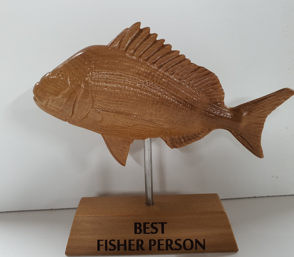Very Large trophy is 370mm high and snapper is 500mm long.